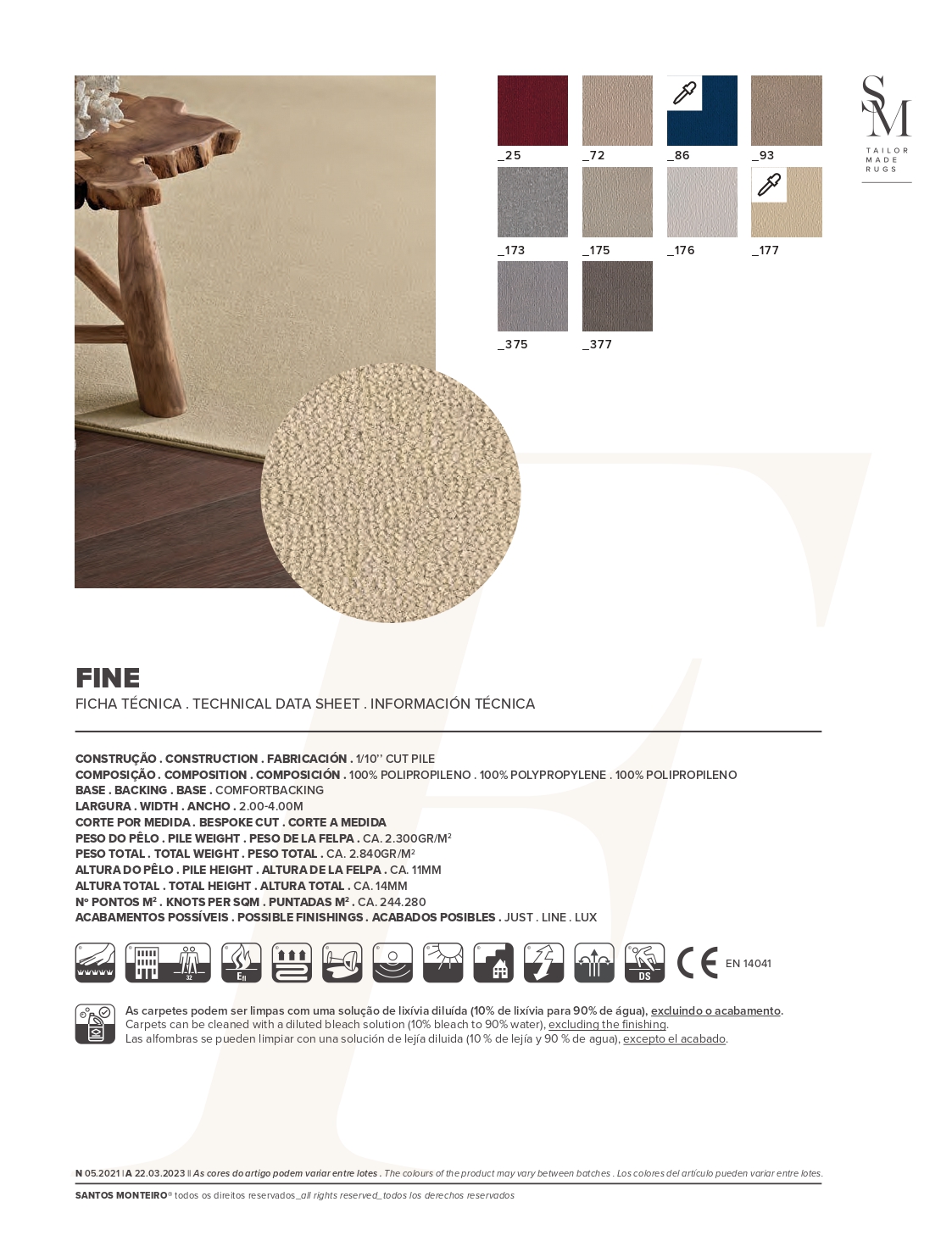 A sua estrutura espessa e firme compete em aparência com as melhores alcatifas de lã, ainda que neste caso, a sua composição seja polipropileno, uma fibra sintética “compatível” com as exigências do dia a dia, e por isso, mais resistente a manchas e nódoas.